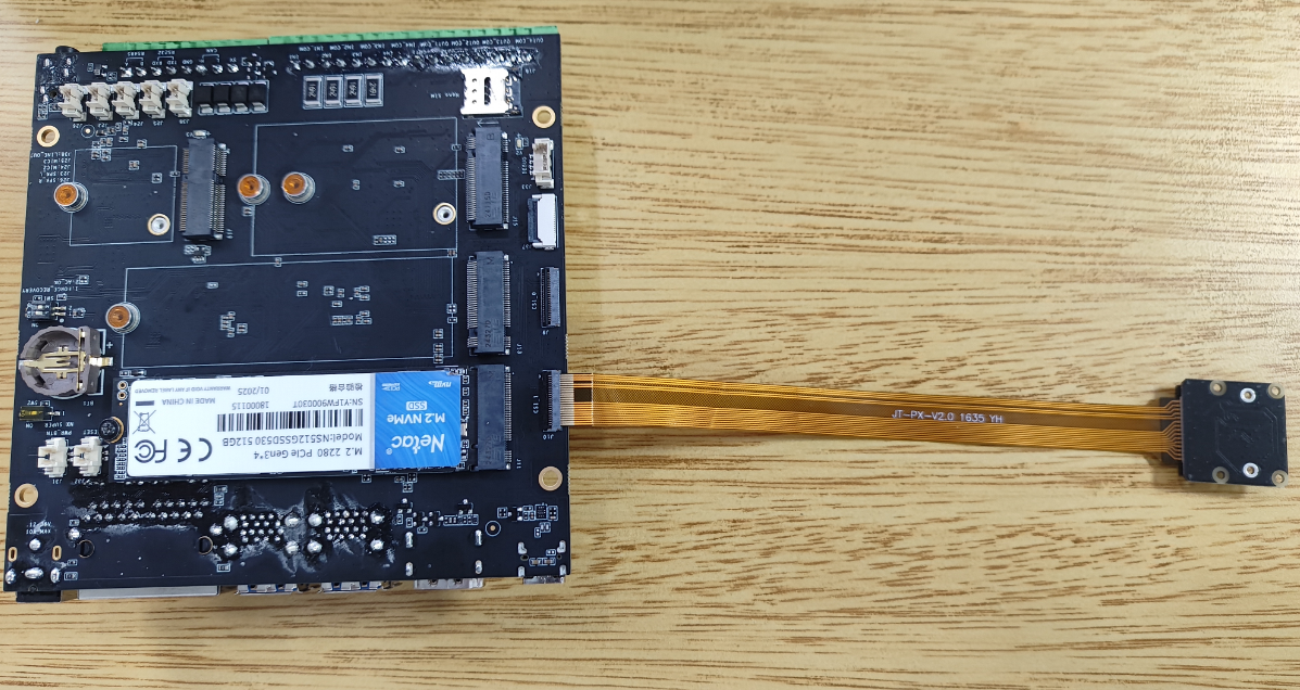 Connect the IMX219 camera to the device (Note: Please ensure that the metal piece of the camera cable is facing upwards).