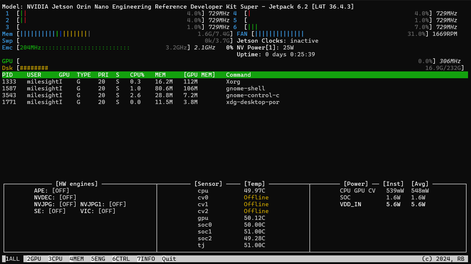 Please follow the steps below to install the Jtop tool to monitor the current device resource usage: